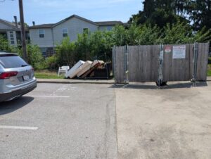 Background – The trash company will not pickup anything that is not in the dumpster. They will also not dump the dumpster if there is anything in front of the dumpster in the way. The association has to have someone to put trash next to the dumpster in the dumpster. If it is furniture, appliances, beds, etc., then we have to pay to have it hauled away. Our costs for picking up trash in common areas and around the dumpsters is about $1,500 a month. This is about .80 cents of your monthly dues. Please make sure your trash is put in the dumpsters and have your furniture, appliances, beds, etc., hauled away at your expense. Don’t put it on your 155 neighbors.